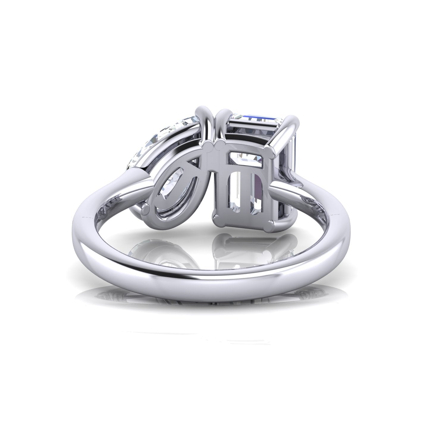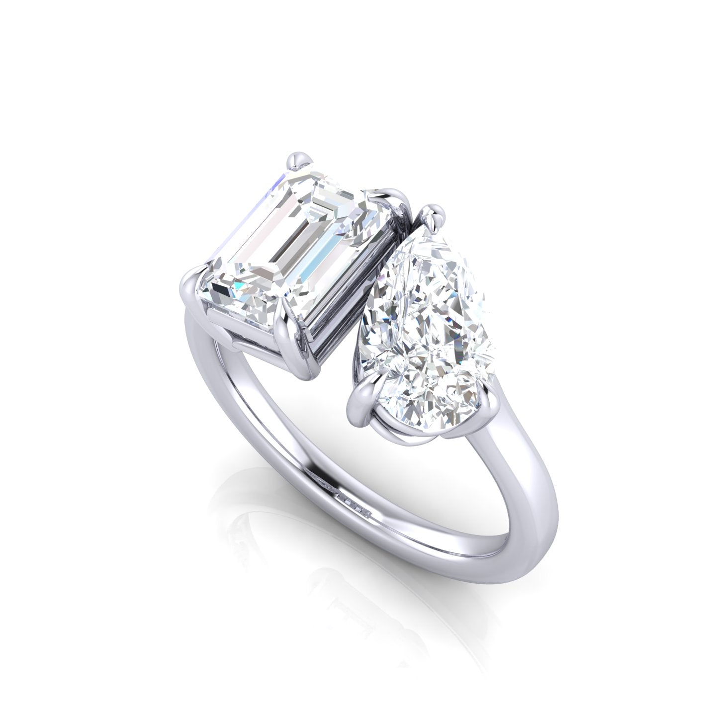 Original creation: 1.00ct pear lab-grown diamond and 1.50ct emerald cut diamond set in a customised basket with the client and his fiancée's initials.